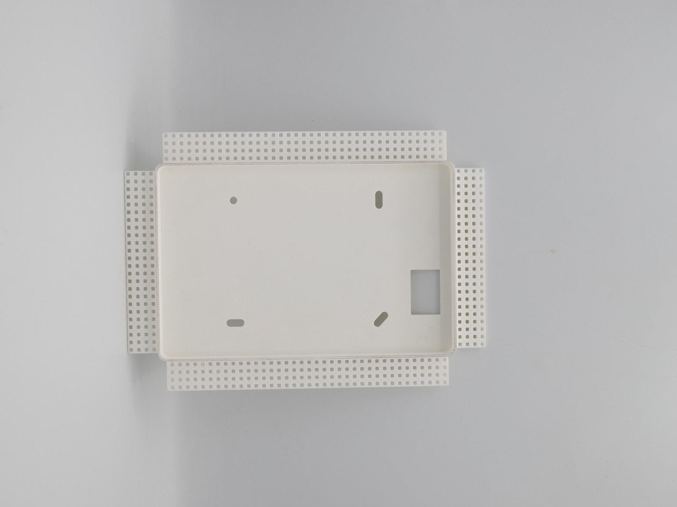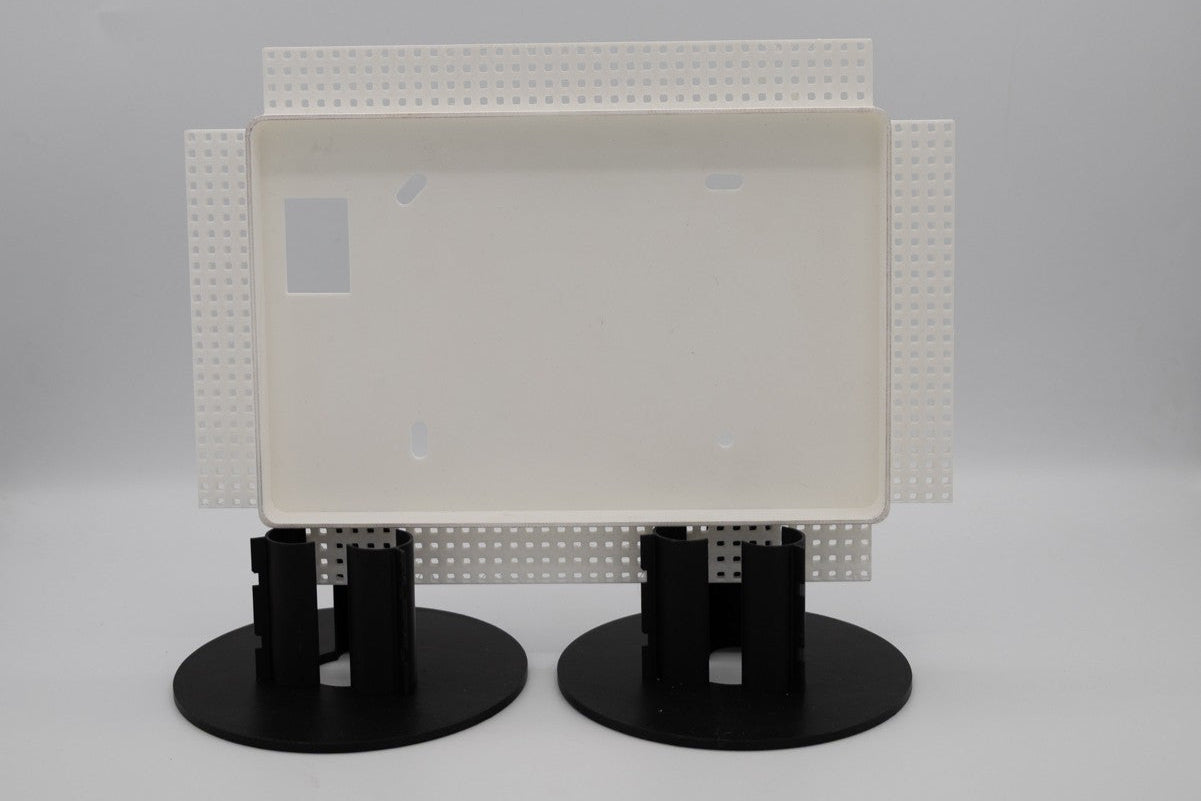 Een verfijnd inbouwpaneel voor beveiligingsschermen, voorzien van een geïntegreerde stuc-rand. Ontworpen om schermen esthetisch en naadloos in de muur te laten opgaan, met behoud van functionaliteit en een hoogwaardige afwerking.